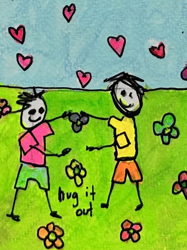 This painting came about from needing a salve to the news. Hearing about the un-provoked trade war from our neighbors to the south day after day sent me running for Love Town.